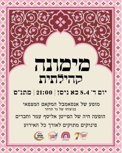 8.4 21:00 מימונה קהילתית במתנ”ס! בהתאם להנחיות